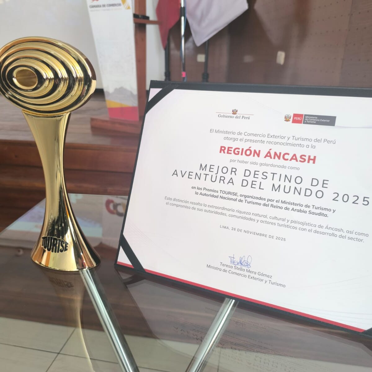 Posteriormente, el 26 de noviembre de 2025, se realizó un acto oficial en Perú donde el MINCETUR entregó físicamente el galardón al Gobierno Regional de Áncash para celebrar este triunfo con la población local.
